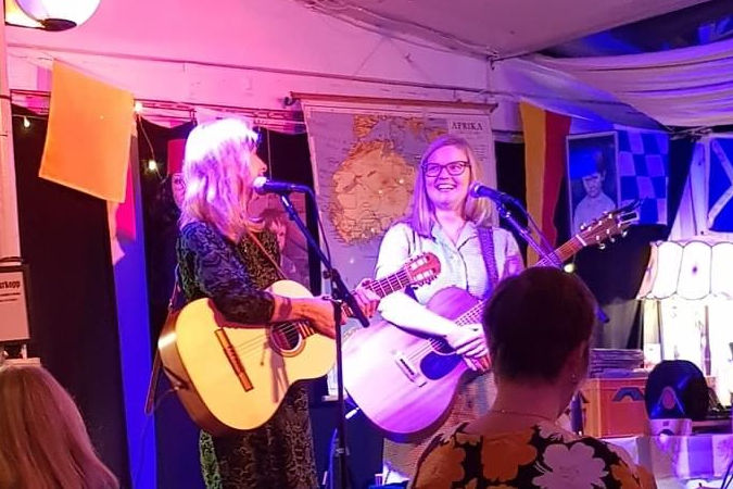 ”Stans kufigaste och mysigaste klubb ger dig som alltid stora famnen. Denna afton får vi besök av Linnéa Jonasson och Elsa Fahlén som framför sånger med inspiration av Ulla Billquist, Alice Babs och andra idoler. Sång, gitarr, tvärflöjt och muntrumpet utlovas.” /Musikdirektör Bengtsson
